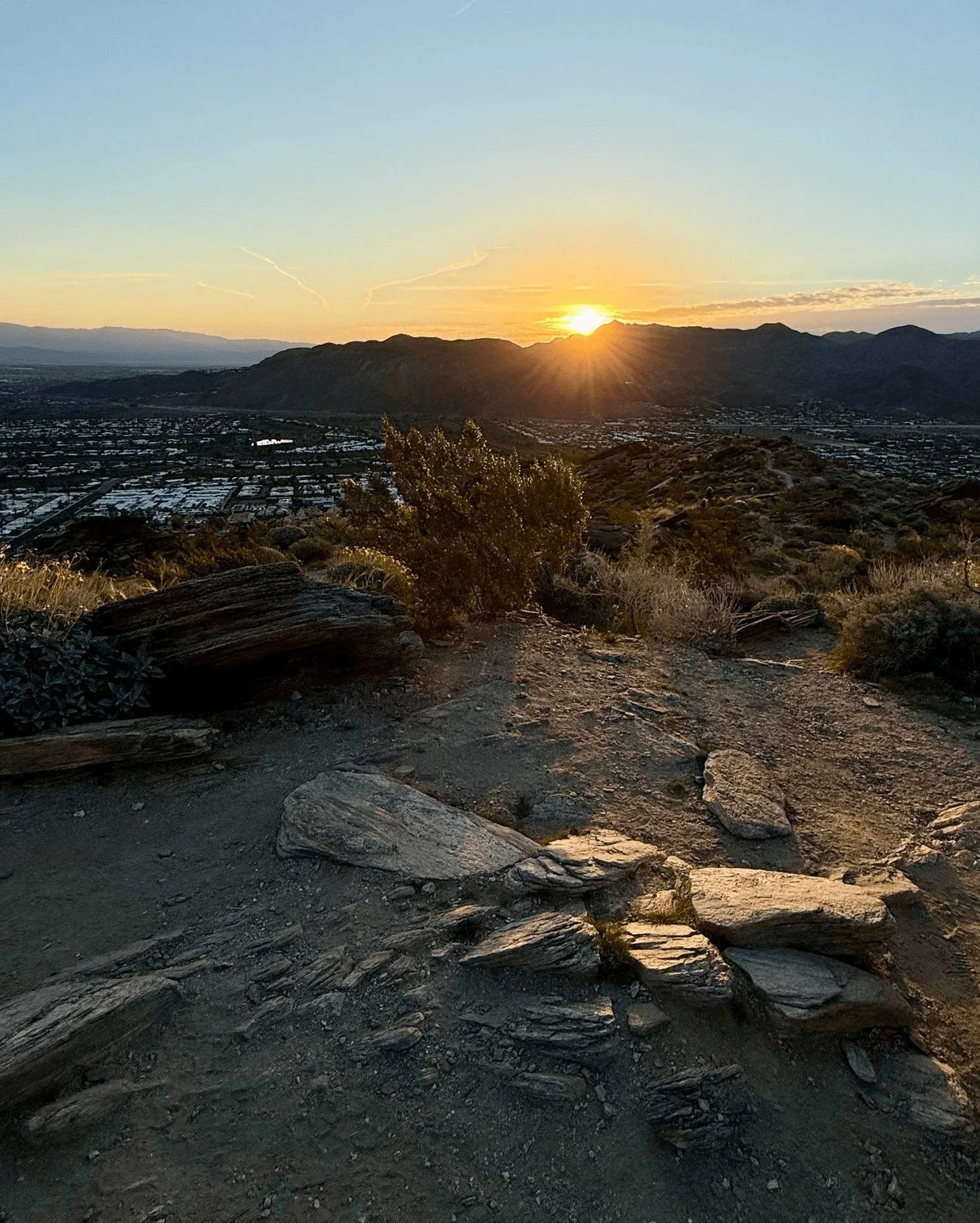 Hike the San Jacinto Mountains only steps from Palm Springs to a resting spot with dramatic views of the Coachella Valley. You'll watch the sun rise over Indian Canyons and then come together in guided meditation, clearing old energy and setting a grounded intention for the day.